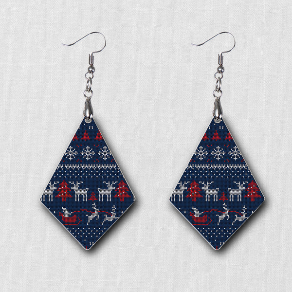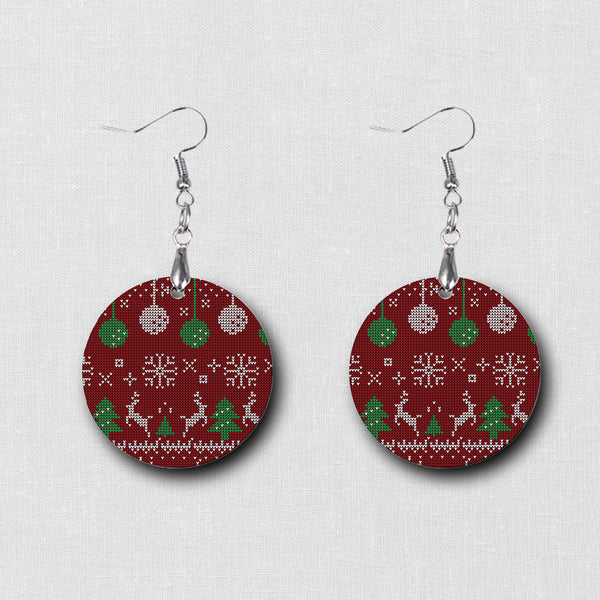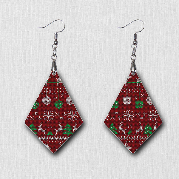 Express your Holiday side and make a statement with our awesome unique Ugly Sweater Pattern earrings. Our hardboard wood earrings have a vibrant image printed on both sides.