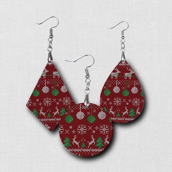 HOLIDAY FASHION EARRINGS - UGLY SWEATER PATTERN